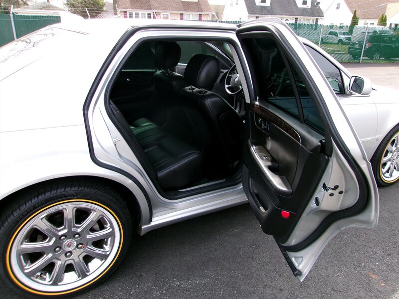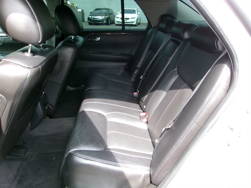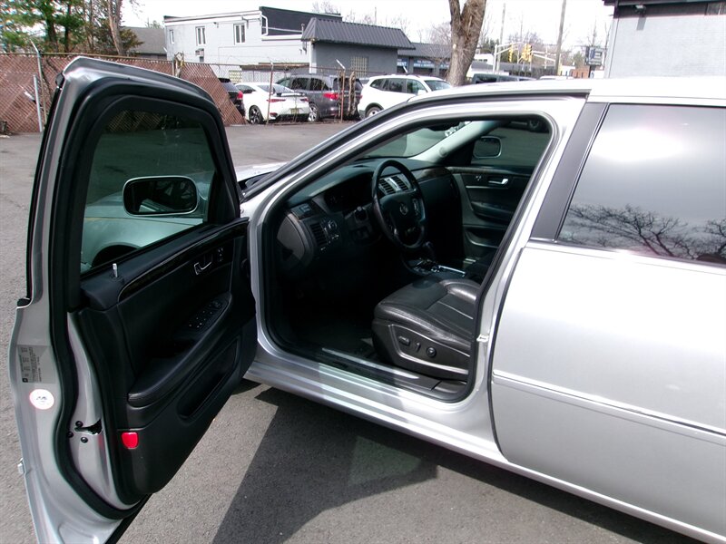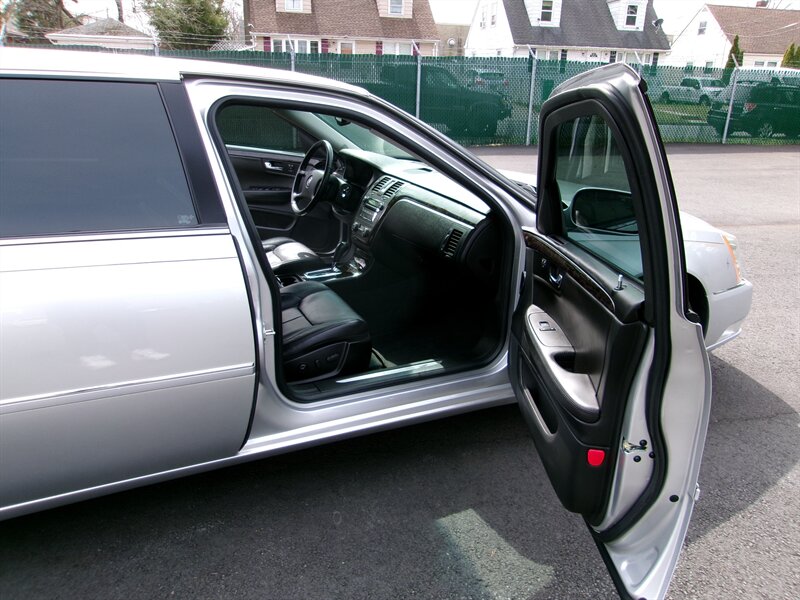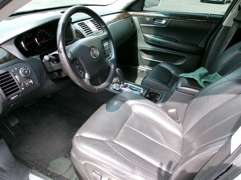 2009 Cadillac DTS Luxury 6-Passenger in Radiant Silver with an Ebony leather interior, in excellent overall condition. Factory-equipped with a 4.6L V8 and automatic transmission, this DTS features a six-passenger seating layout (front seating configured for three) trimmed in Ebony leather and finished with wood accents. Standard luxury and convenience items include power-adjustable, heated front seats with driver memory, leather-wrapped tilt/telescoping steering wheel with audio controls, dual-zone automatic climate control, power windows/locks/mirrors, remote keyless entry, cruise control and a premium Bose audio system with CD and auxiliary inputs plus Bluetooth hands-free capability.