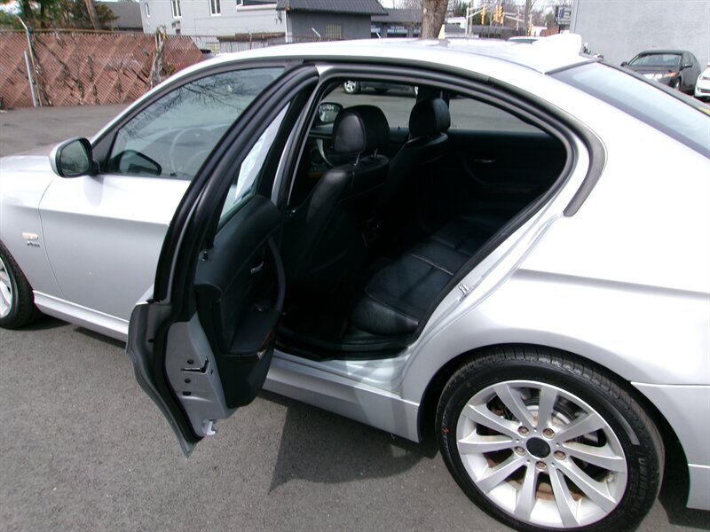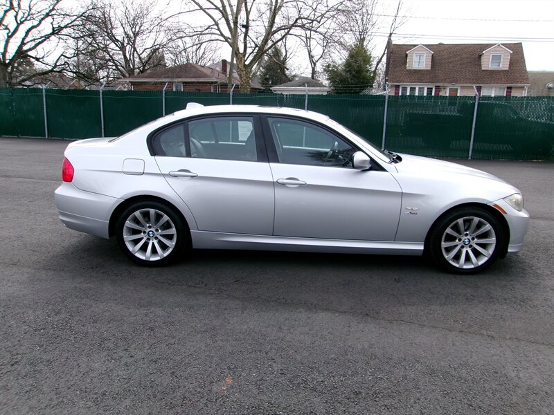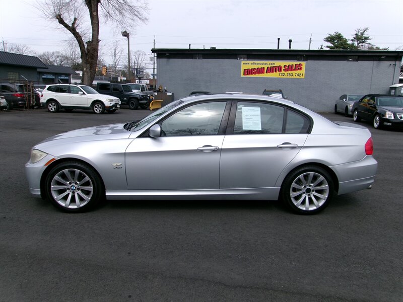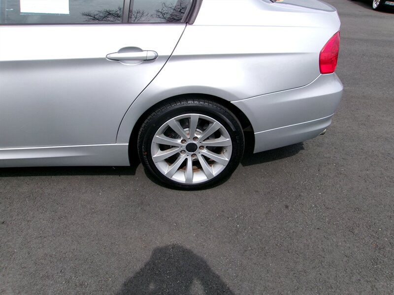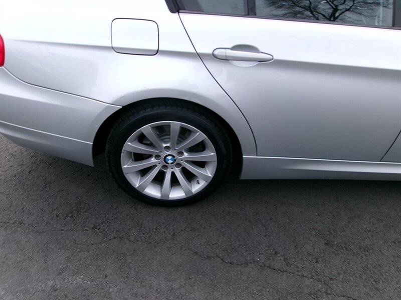 2011 BMW 3 Series 328i xDrive with a 3.0L inline-6 producing 230 hp and 200 lb-ft, paired with BMW’s xDrive all-wheel-drive system. Factory equipment includes anti-lock brakes, Dynamic Stability Control with traction control, tire pressure monitoring and anti-theft alarm; power accessories (windows, door locks, heated mirrors), dual-zone automatic climate control, cruise control, steering-wheel audio controls, 8-way power front seats upholstered in Black Dakota Leather, folding rear seat, alloy wheels, fog lamps and an AM/FM/CD audio system with auxiliary input. Exterior is Silver with a Black Dakota Leather interior; the vehicle is in excellent overall condition.