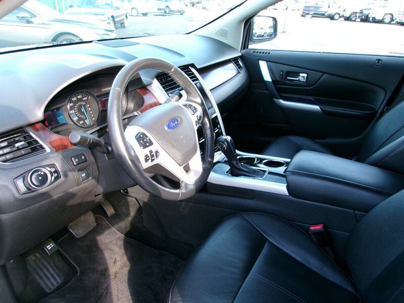 The exterior of the Edge Limited features a sleek and modern design, highlighted by chrome accents and 18-inch alloy wheels that enhance its sophisticated appearance. The vehicle is equipped with standard fog lamps and a rear spoiler, contributing to both functionality and aesthetics.