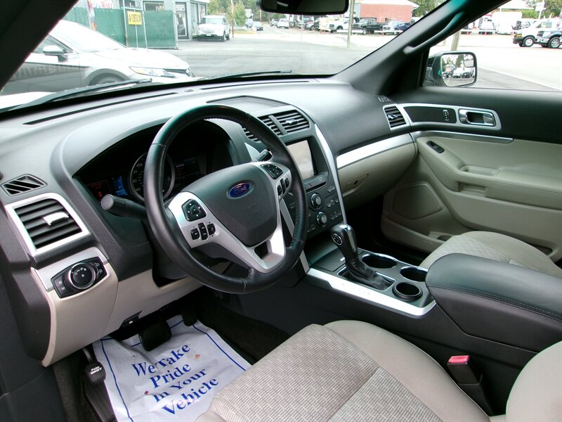 Inside, the Explorer XLT is spacious and comfortable, accommodating up to seven passengers with its three-row seating configuration. The well-appointed interior includes cloth seating surfaces, providing both comfort and durability. The front seats are power-adjustable, ensuring that drivers and passengers can find their ideal seating position.