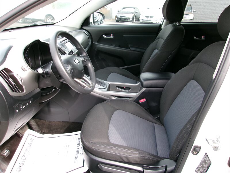 2014 Kia Sportage LX in Clear White with Alpine Gray cloth interior. Powered by a 2.4L I4 (182 hp, 177 lb-ft). Vehicle is in excellent overall condition.