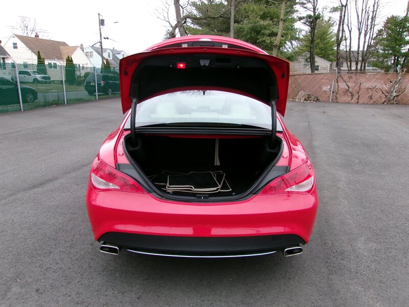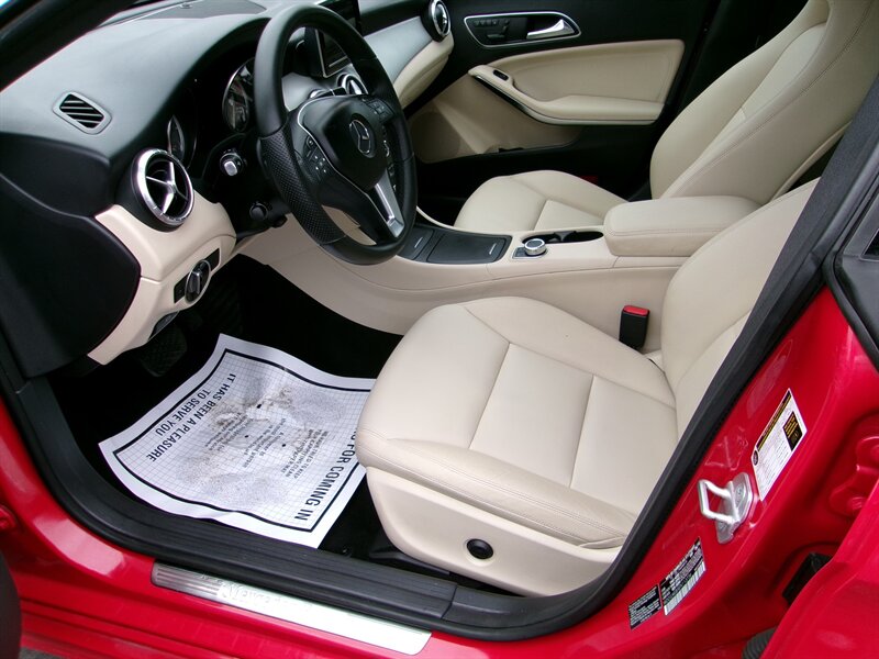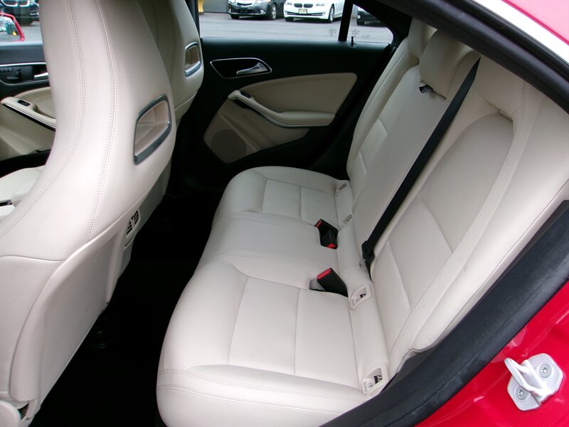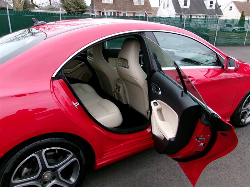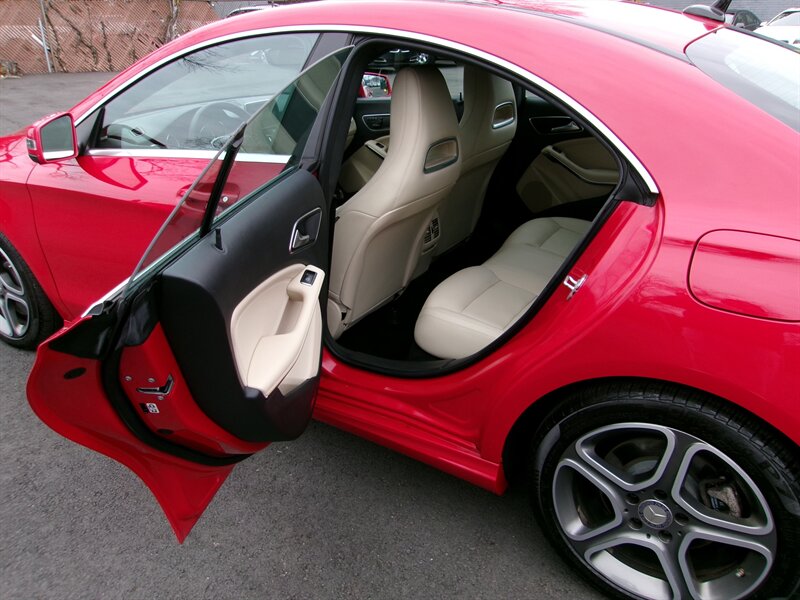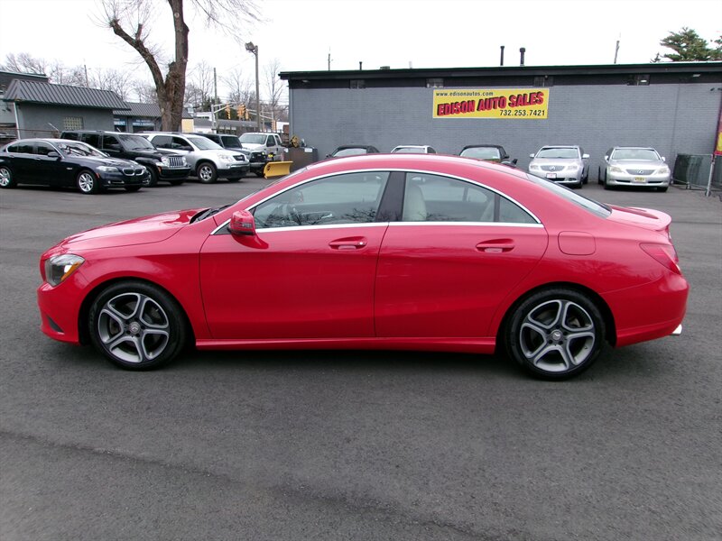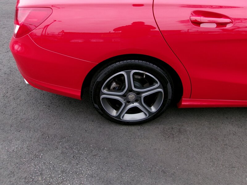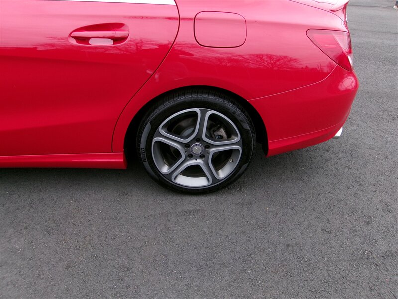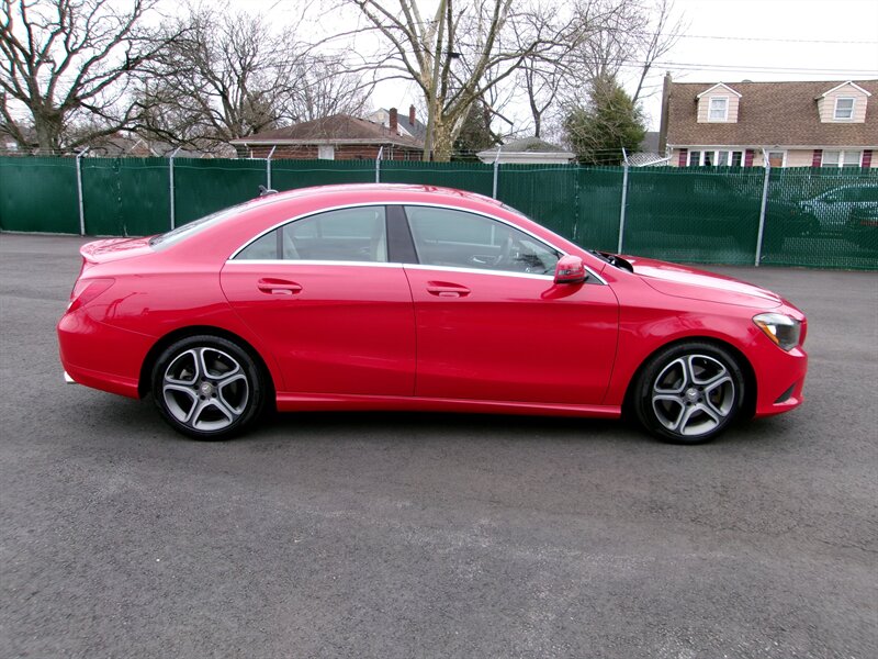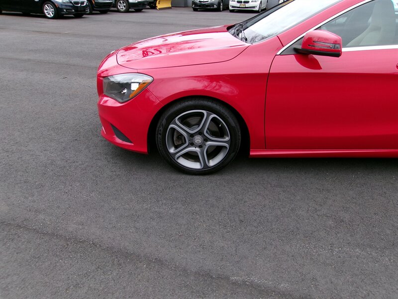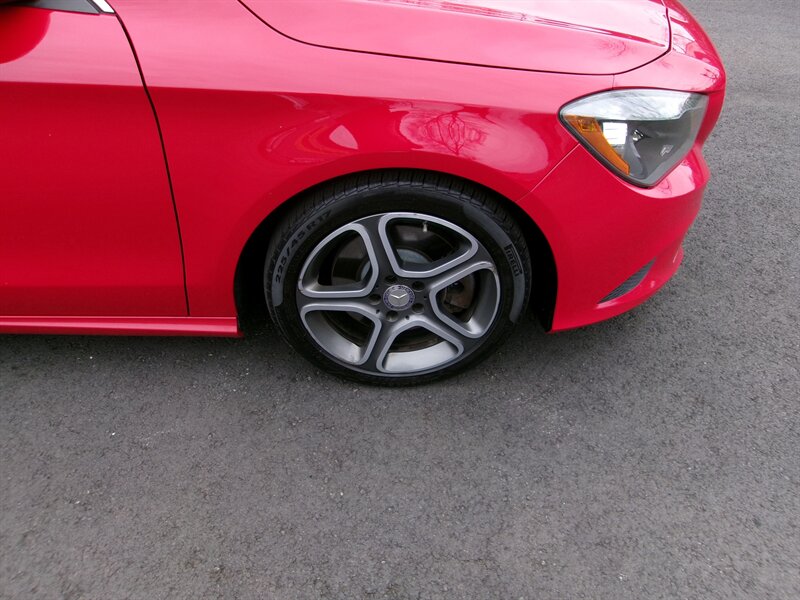 2014 Mercedes-Benz CLA 250 — red exterior, gray interior, excellent overall condition. Powered by a 2.0L turbocharged I4 (208 hp, 258 lb-ft) paired with Mercedes’ 7-speed dual-clutch automatic transmission and standard front-wheel drive.