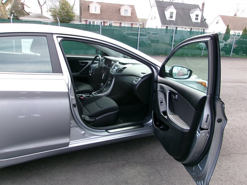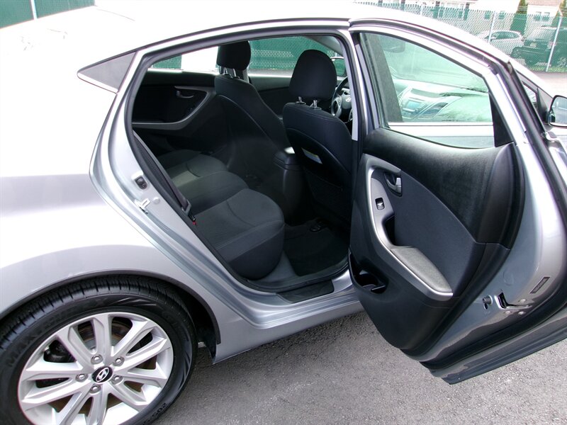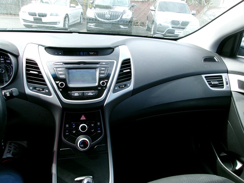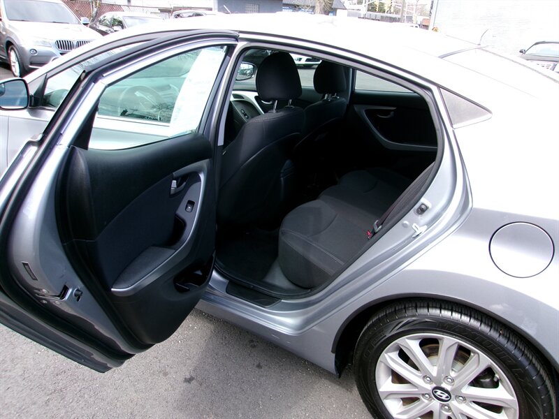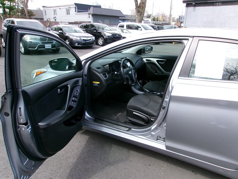 2015 Hyundai Elantra SE in Shimmering Silver with a Black interior, powered by a 1.8L I4 engine producing 145 hp and 130 ft. lbs. of torque. Vehicle is in excellent overall condition.