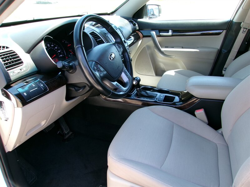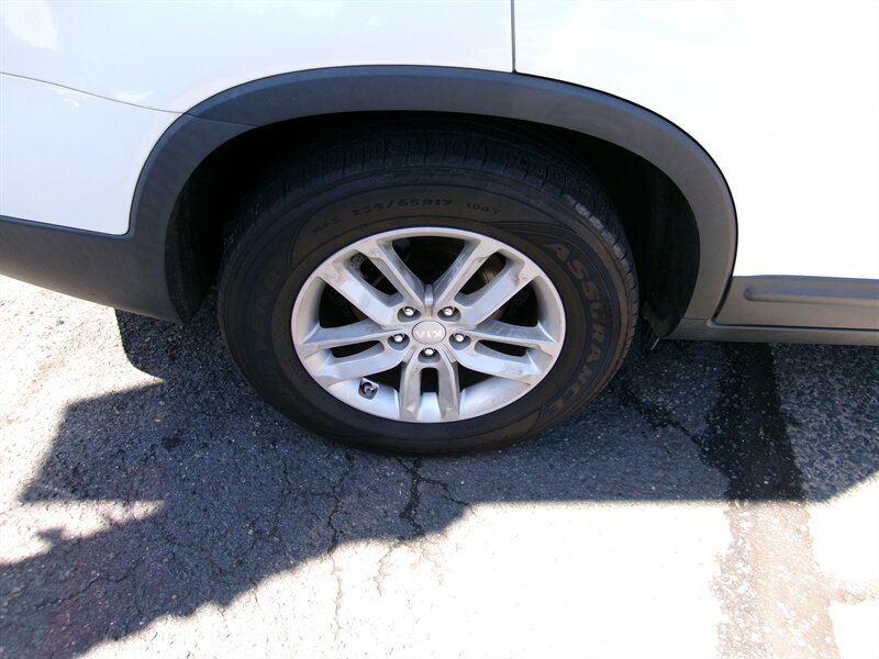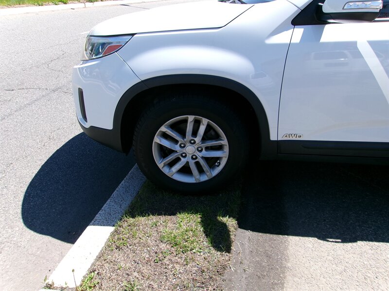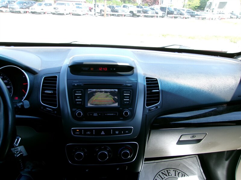 2015 Kia Sorento LX with a 2.4L I4 engine delivering 191 hp and 181 lb-ft of torque. Factory-standard equipment includes power windows and locks, remote keyless entry, air conditioning, cruise control, a tilt/telescoping steering wheel with steering-wheel audio and Bluetooth hands-free controls, AM/FM/CD audio with USB and auxiliary inputs, and 17-inch alloy wheels. The vehicle is in excellent overall condition.
