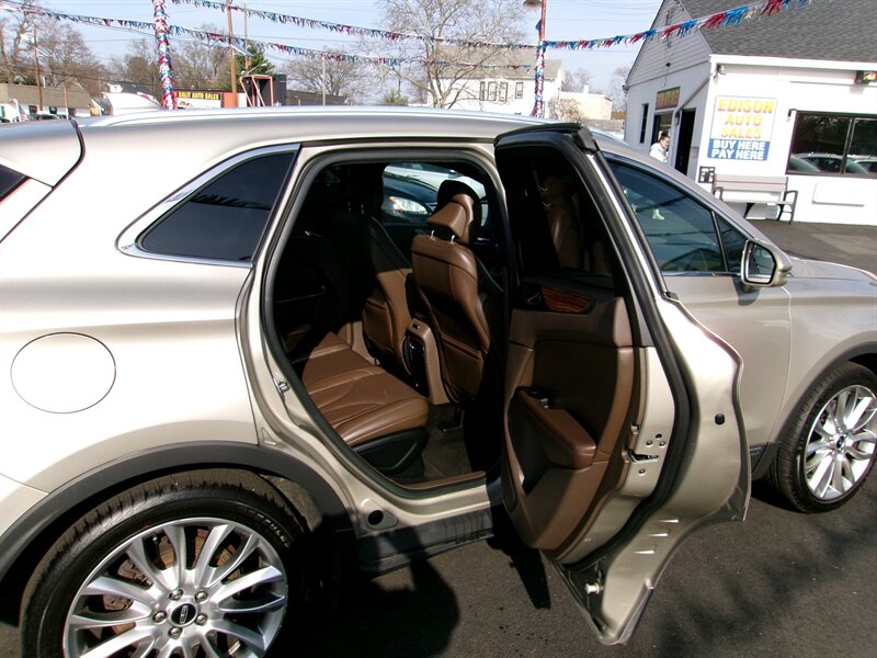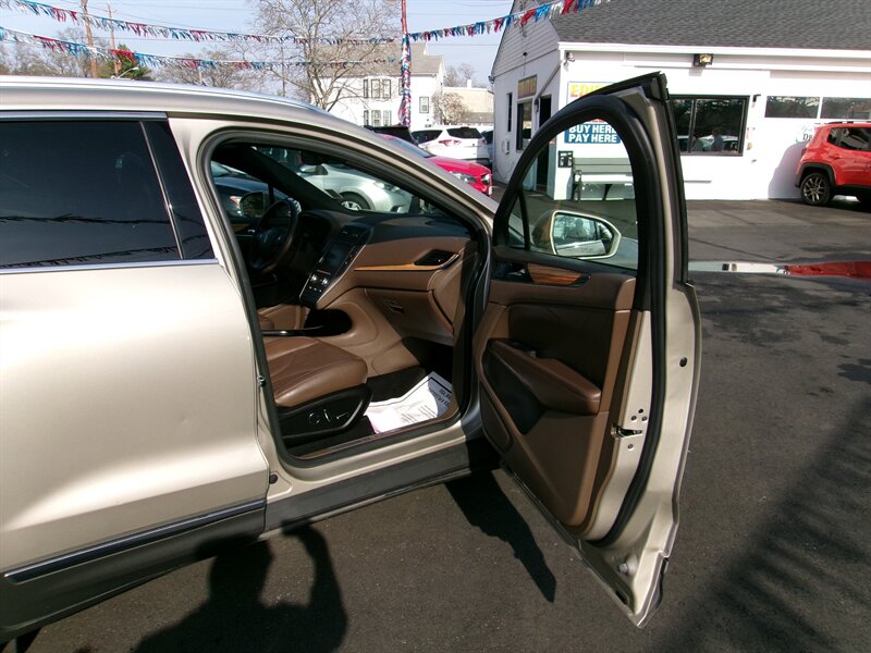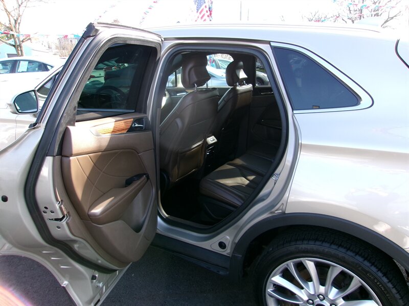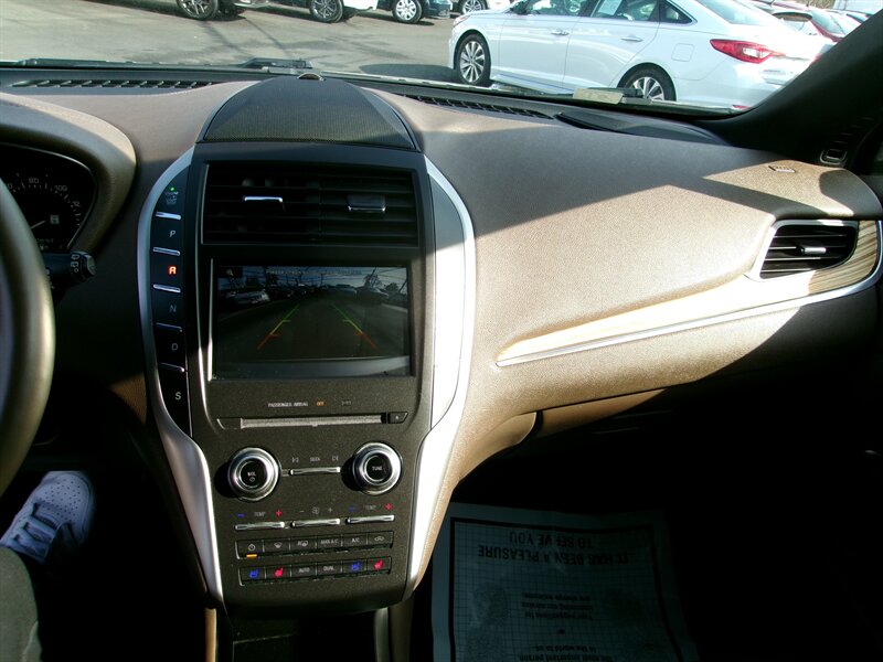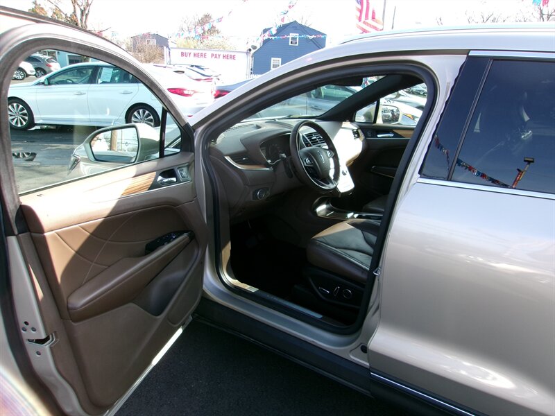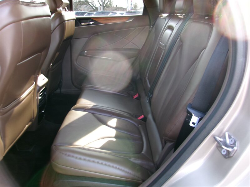 2015 Lincoln MKC in Karat Gold Metallic with a brown interior, presented in excellent overall condition. Powered by a factory EcoBoost 2.0L turbocharged I4 producing 240 hp and 270 lb-ft of torque. Factory equipment includes the MyLincoln Touch infotainment touchscreen with Bluetooth and USB connectivity, dual-zone automatic climate control, keyless entry with push-button start, power-adjustable front seats with leather seating surfaces, rearview camera, power windows and mirrors, and alloy wheels. This MKC offers the comfort, convenience, and safety features expected from the original factory build.