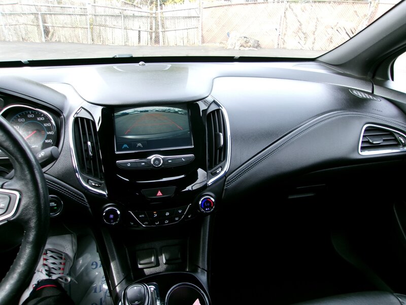 2016 Chevrolet Cruze Premier with a 1.4L Turbo I4 engine producing 153 hp and 177 lb-ft of torque. Finished in gray with a Jet Black interior, this vehicle is in excellent overall condition. Factory equipment includes leather-appointed seating with heated front seats and an 8-way power driver’s seat, dual-zone automatic climate control, keyless entry with push-button start and remote start, a MyLink touchscreen infotainment system with Bluetooth and USB connectivity, rearview camera, alloy wheels, fog lamps and automatic headlights. Standard safety and convenience features include ABS, traction and stability control, tire pressure monitoring, steering-wheel audio and cruise controls, and OnStar connectivity.