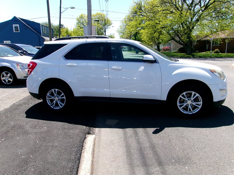 2016 Chevrolet Equinox LT in Summit White with a Jet Black interior. Powered by an Ecotec 2.4L I4 engine producing 182 hp and 172 lb-ft, paired to a smooth 6-speed automatic. Factory equipment includes Chevrolet MyLink infotainment with Bluetooth, USB and auxiliary inputs and a six-speaker audio system; cloth seating with 60/40 split-folding rear seat and adjustable driver seating; power windows, door locks and mirrors, remote keyless entry, cruise control and air conditioning. Exterior features include 17-inch alloy wheels and roof rails. This vehicle is in excellent overall condition.
