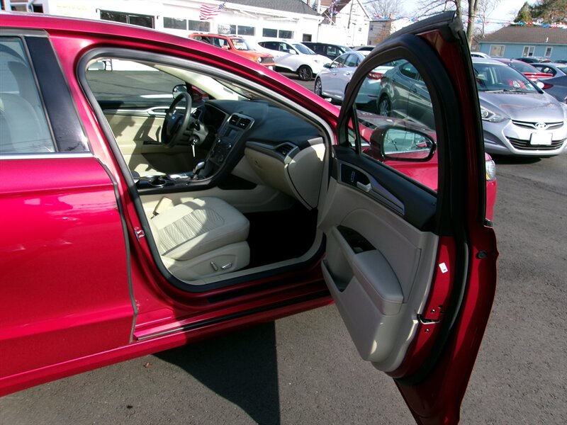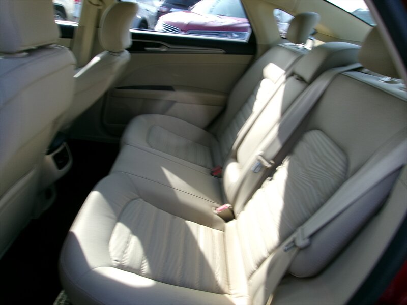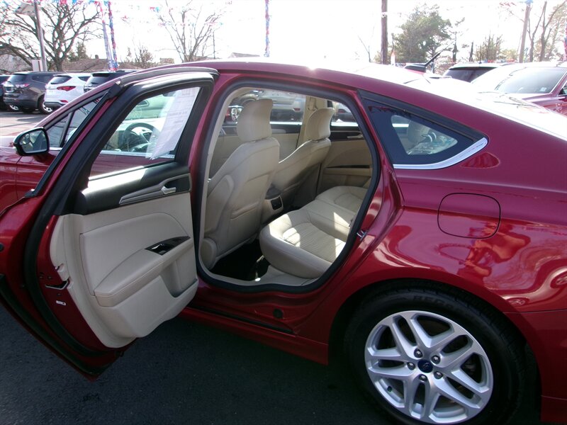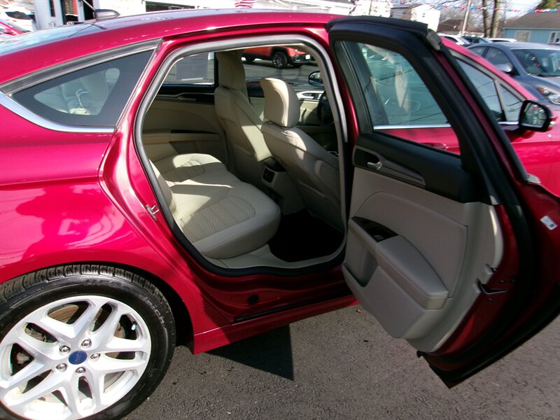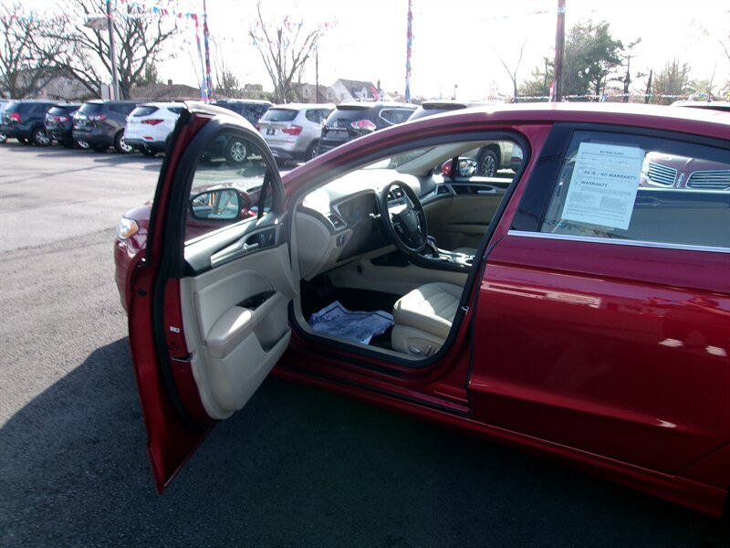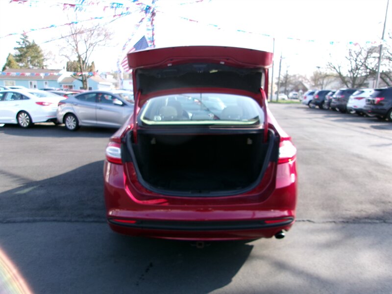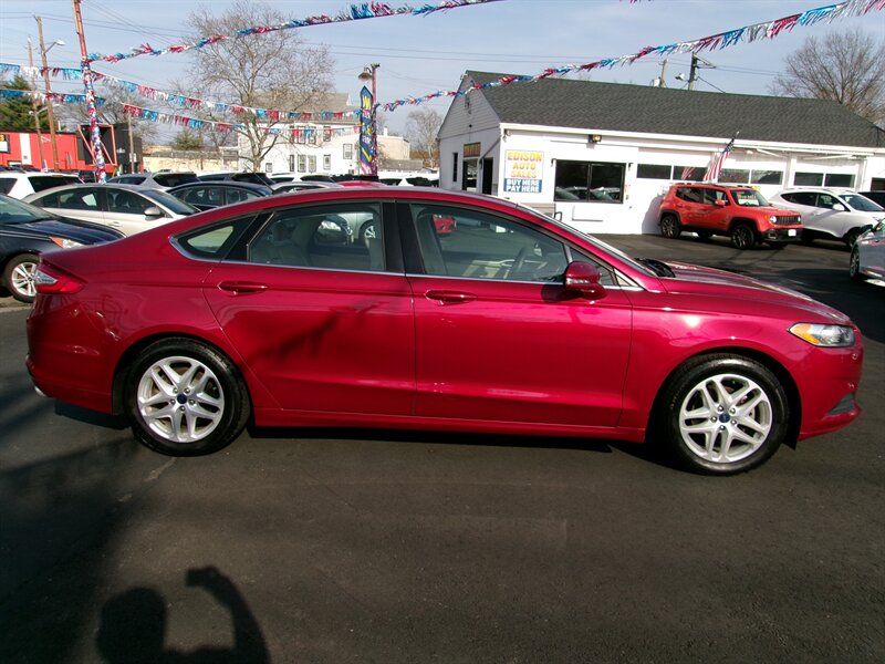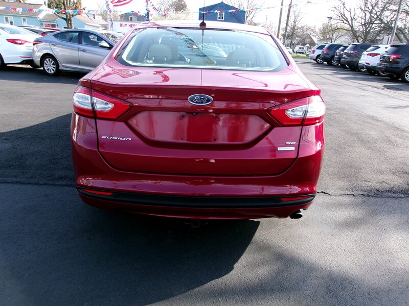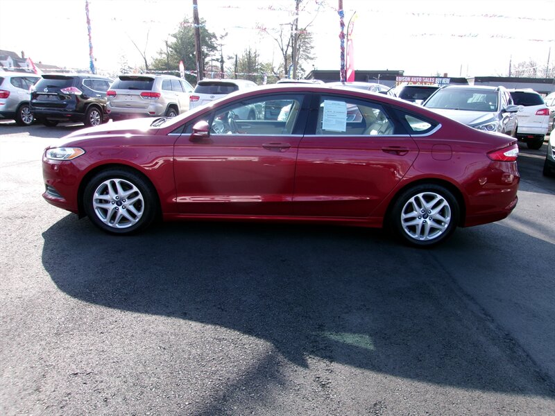 2016 Ford Fusion SE is powered by a 1.5L EcoBoost turbocharged I4 (181 hp, 185 lb-ft) mated to a 6-speed automatic and front-wheel drive. Factory equipment includes alloy wheels, halogen headlamps, power windows/locks/mirrors, remote keyless entry, cruise control, steering-wheel-mounted audio and phone controls, Ford SYNC with Bluetooth, USB and auxiliary inputs, AM/FM/CD audio, comfortable Ebony cloth seating with 60/40 split-fold rear seat, air conditioning. Vehicle is in excellent overall condition.