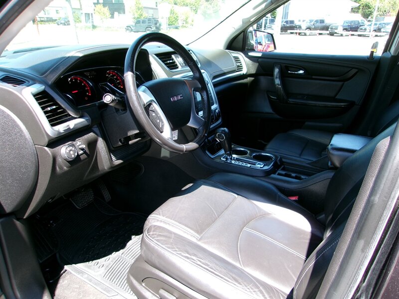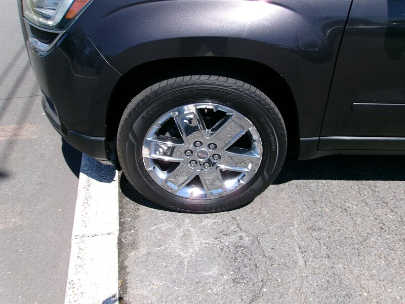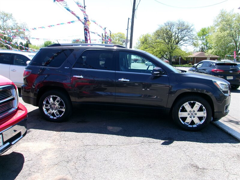 2017 GMC Acadia Limited in gray with a black interior, powered by a 3.6L V6 producing 281 hp and 266 lb-ft of torque. Factory-standard features include a six-speed automatic transmission, seating for up to seven with third-row seats and black leather-appointed seating, power-adjustable driver’s seat, heated front seats, tri-zone automatic climate control, power windows and locks with remote keyless entry, steering-wheel mounted audio and cruise controls, GMC IntelliLink infotainment with Bluetooth, USB and auxiliary inputs plus AM/FM/CD.