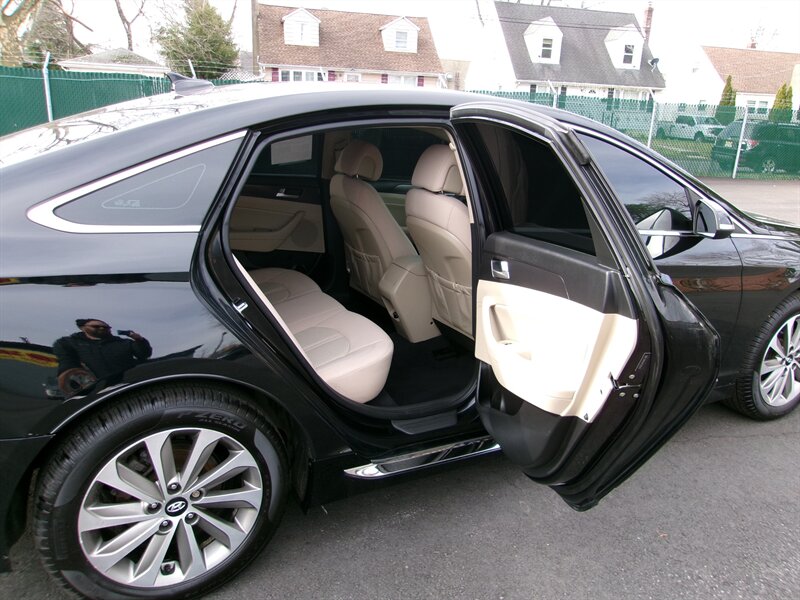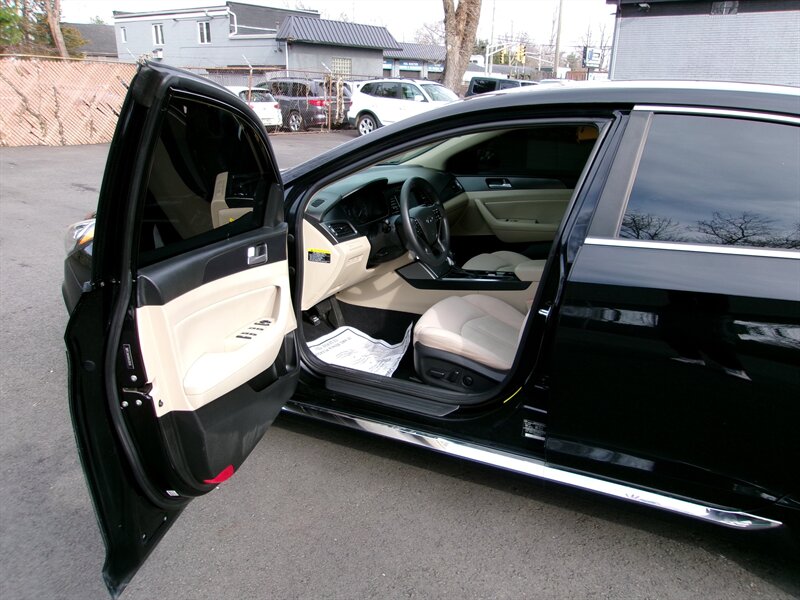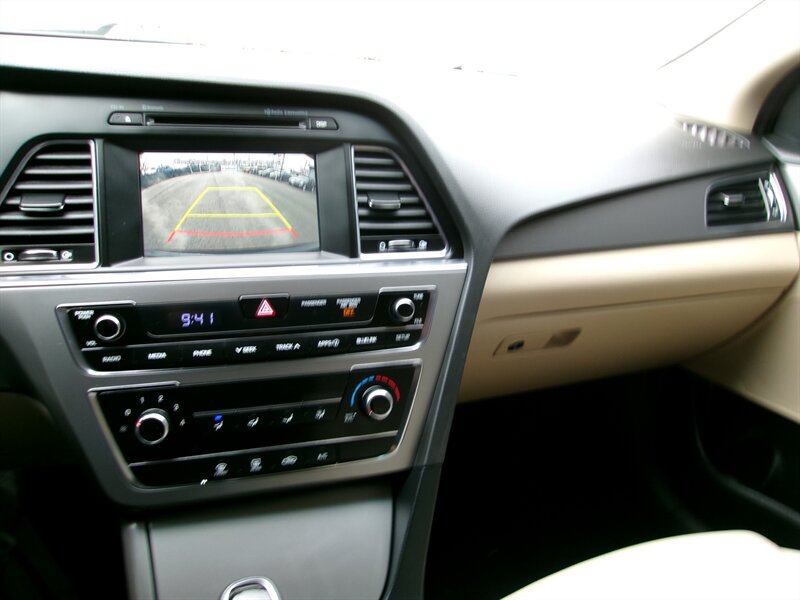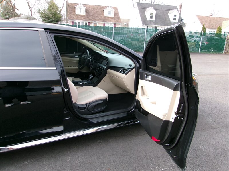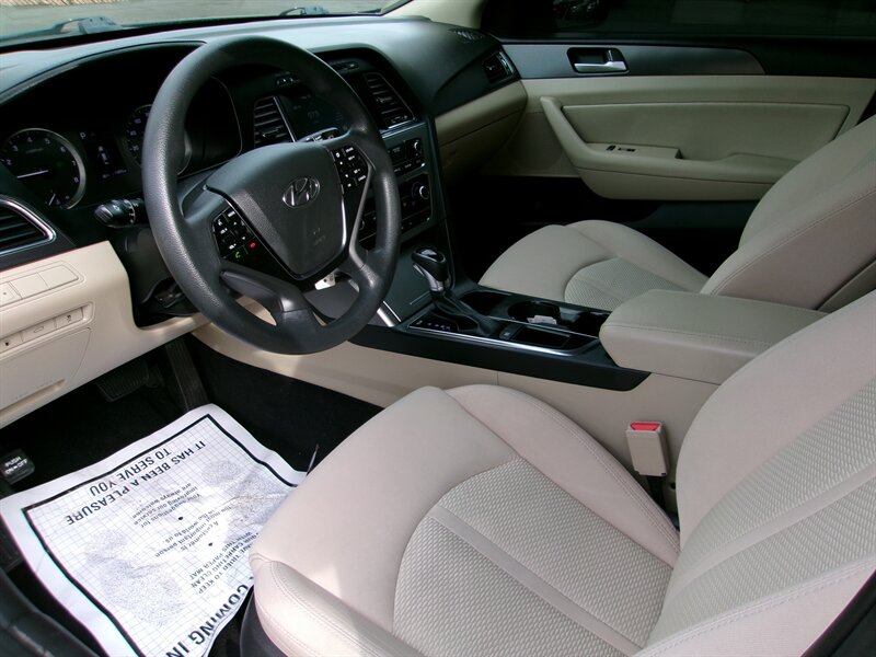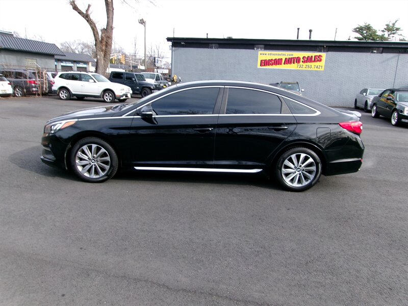 2017 Hyundai SONATA Sport in black with a beige interior, powered by a 2.4L I4 (185 hp, 178 ft-lbs) paired with a six-speed transmission. The vehicle is in excellent overall condition.