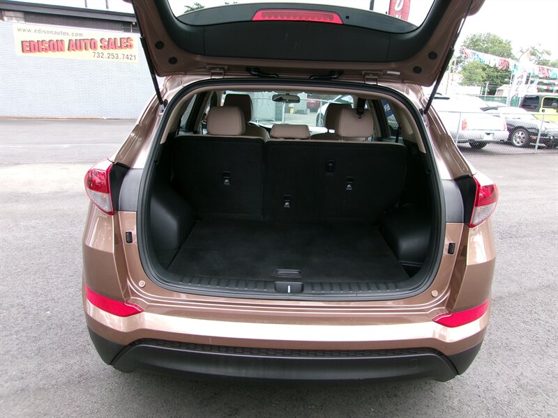Safety features include a rearview camera that assists with parking and reversing maneuvers, as well as stability control and traction control systems that help maintain stability on various road surfaces. The TUCSON SE also comes with front, side, and curtain airbags to provide additional protection in the event of a collision.