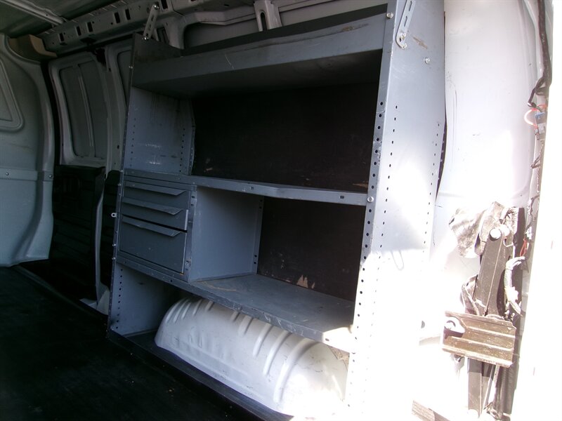 For convenience, the Express 2500 comes equipped with power windows and door locks, enabling easy access for all passengers. The vehicle includes a standard audio system with AM/FM radio and a USB port, allowing you to enjoy your favorite music on the go. Additionally, the van is fitted with a rearview camera to assist with parking and maneuvering in tight spaces.